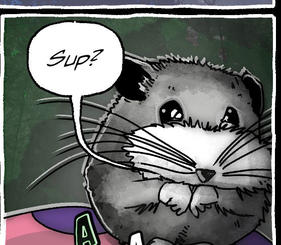 On Friday at 4 ish I launch, Ill be free drawing on Jasons program doing Gandalf the hamster. Fey’s companion and loyal pet. He is a simple character but pne that represents the naivity and simple pov that most children have. If not friend why friend shaped? Camille is very much of that ilk. Even now her heart innocently wants to share her love. Its intoxicating really.